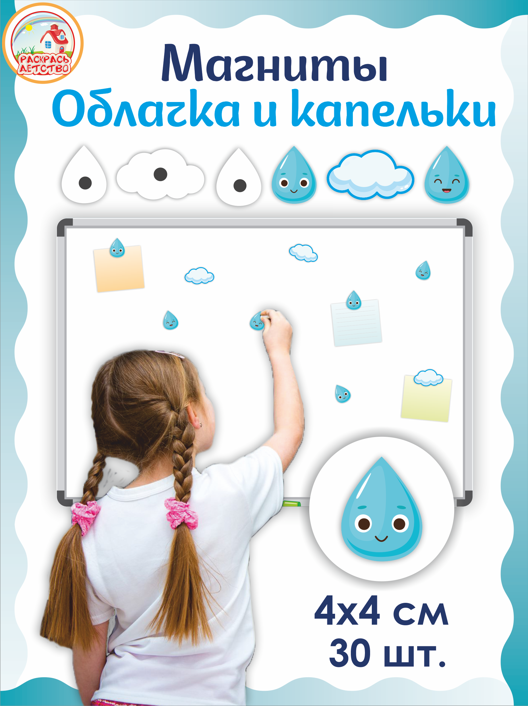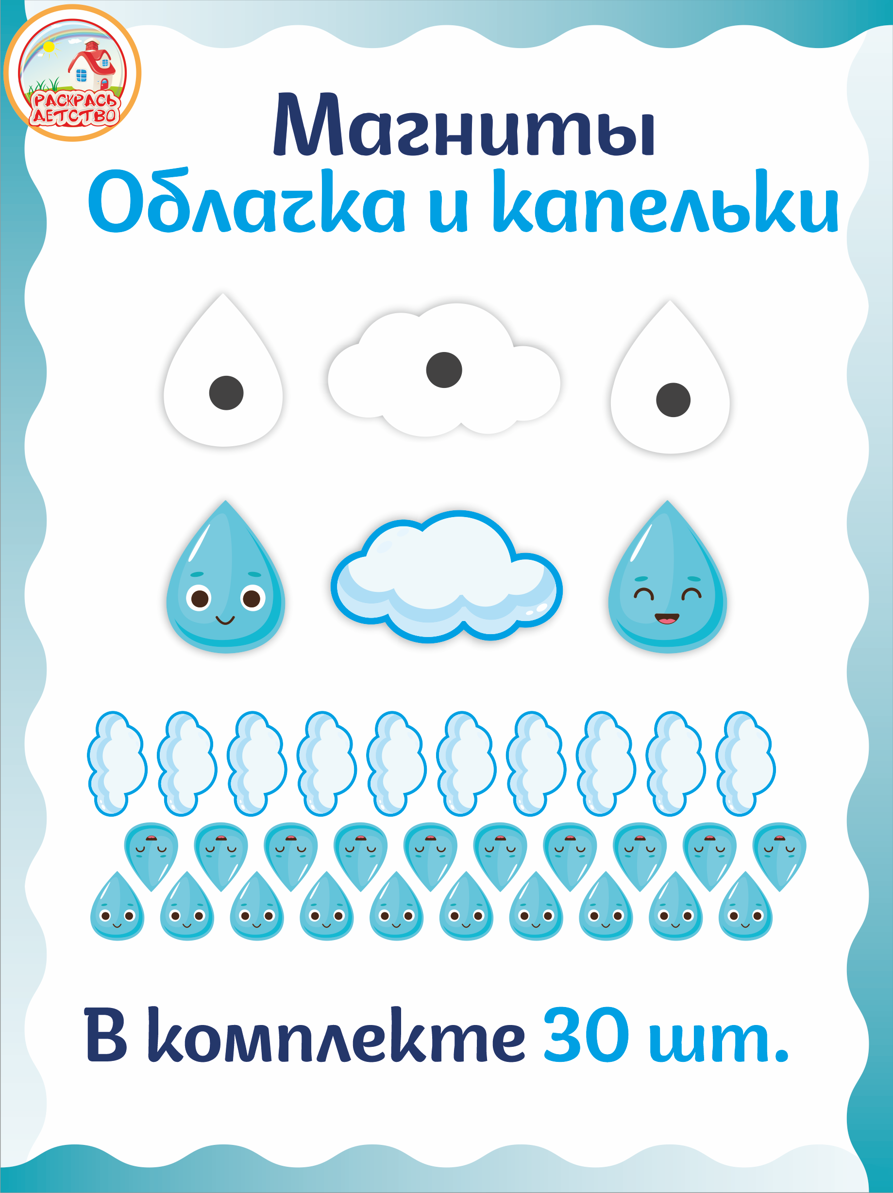 Магниты для крепления рисунков и фотографий "Облачка и капельки"