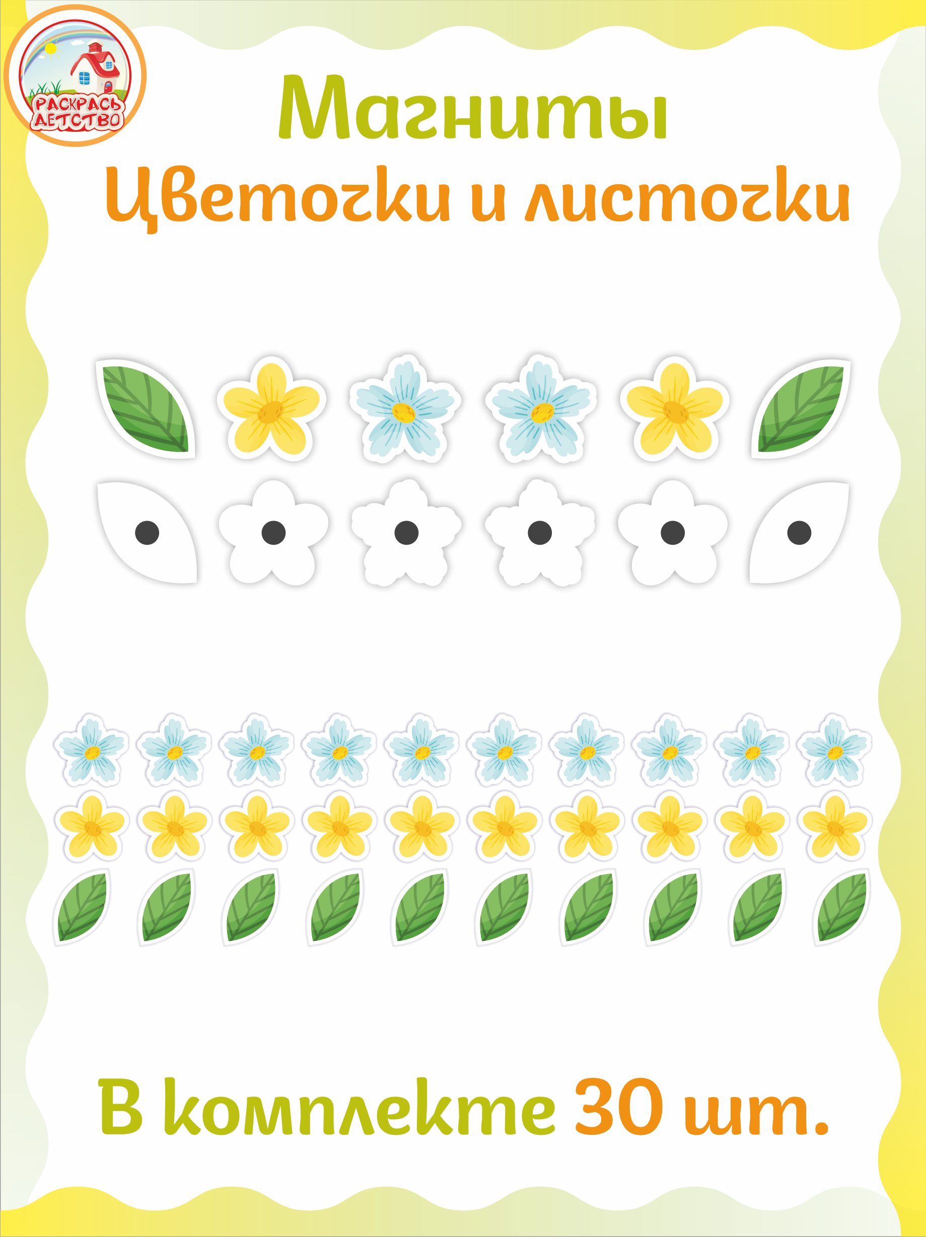 Магниты для крепления рисунков и фотографий "Цветочки и листочки"