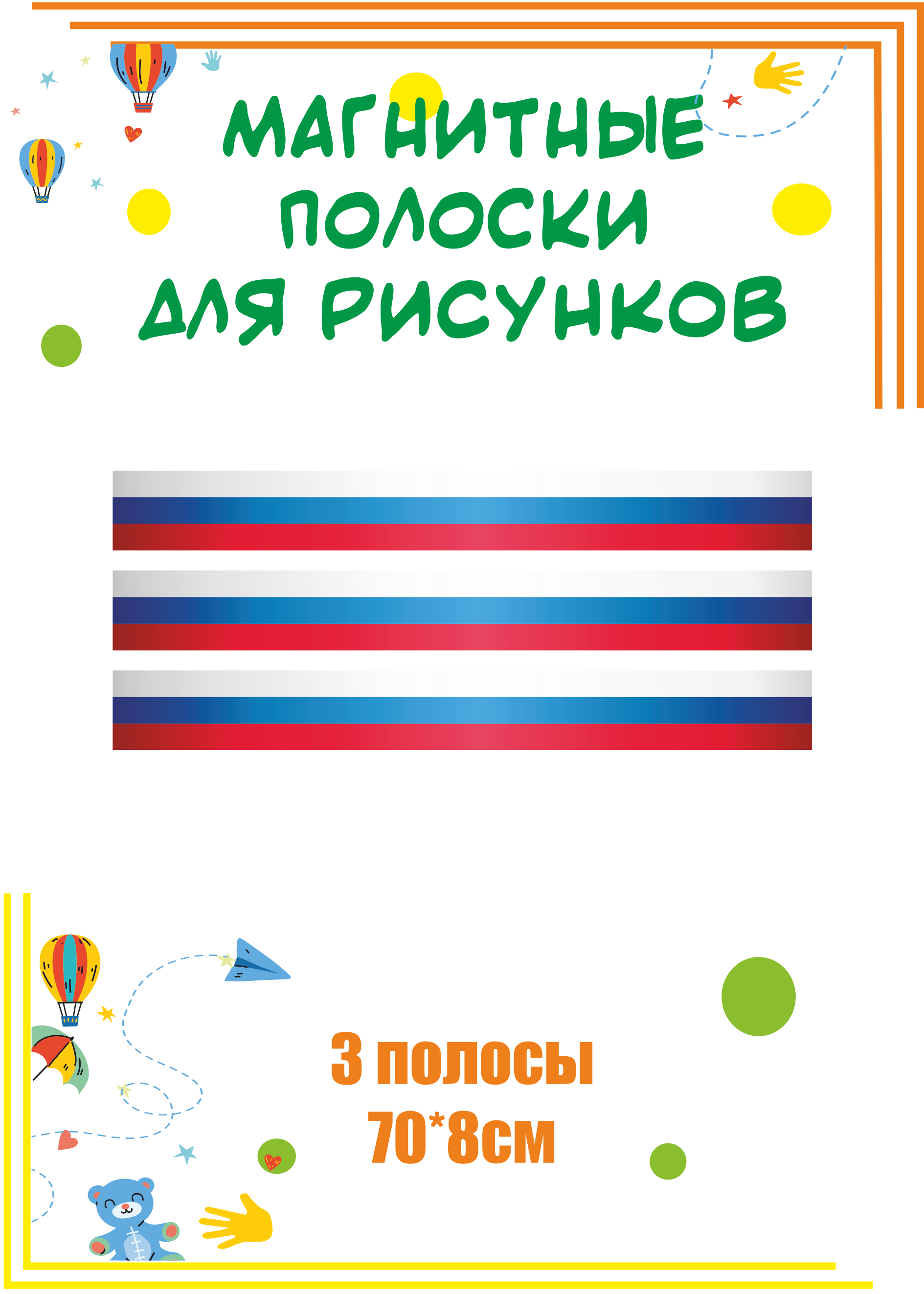 Комплект магнитных лент из 3 штук для выставки рисунков и оформления уголка творчества.