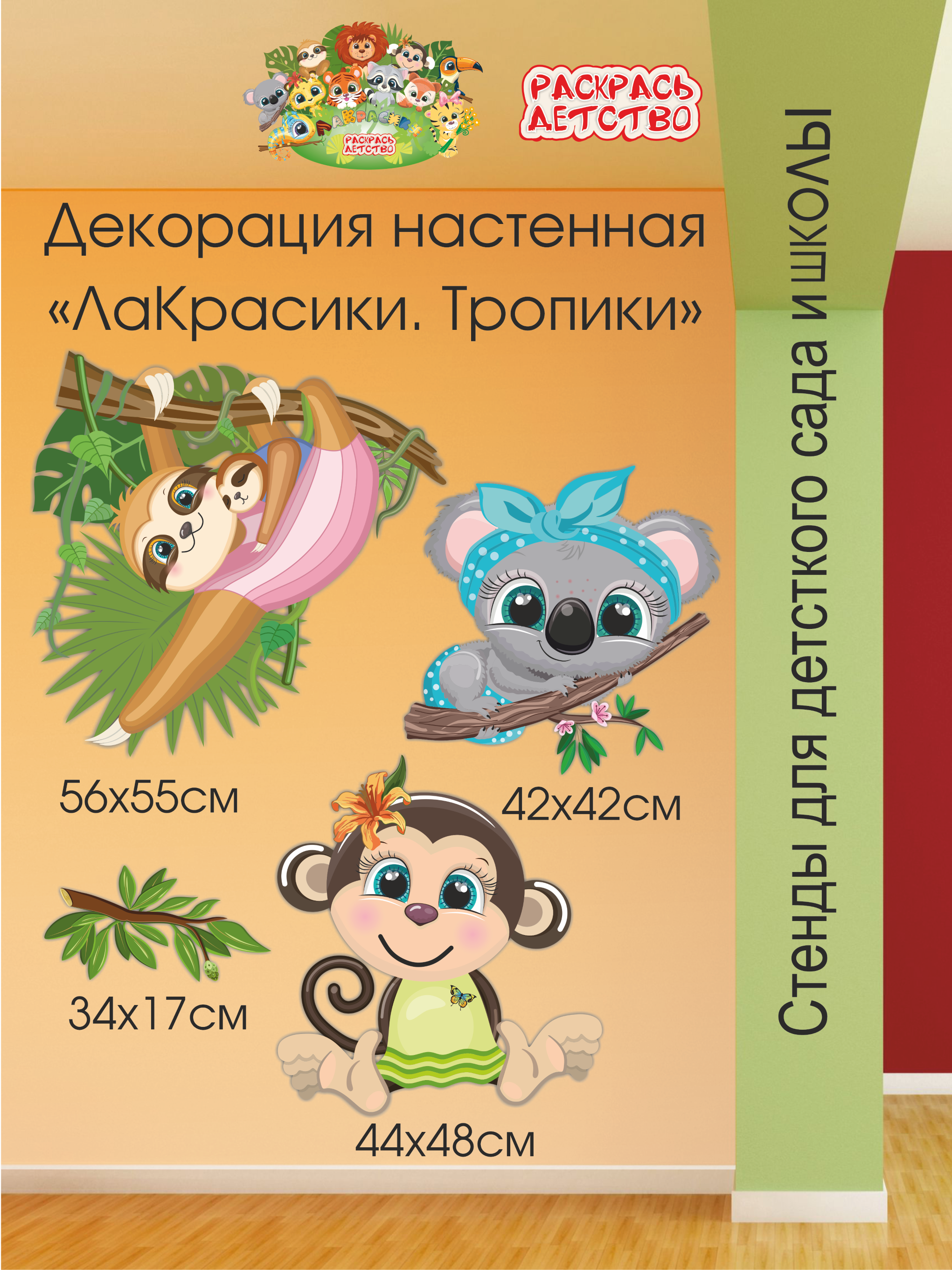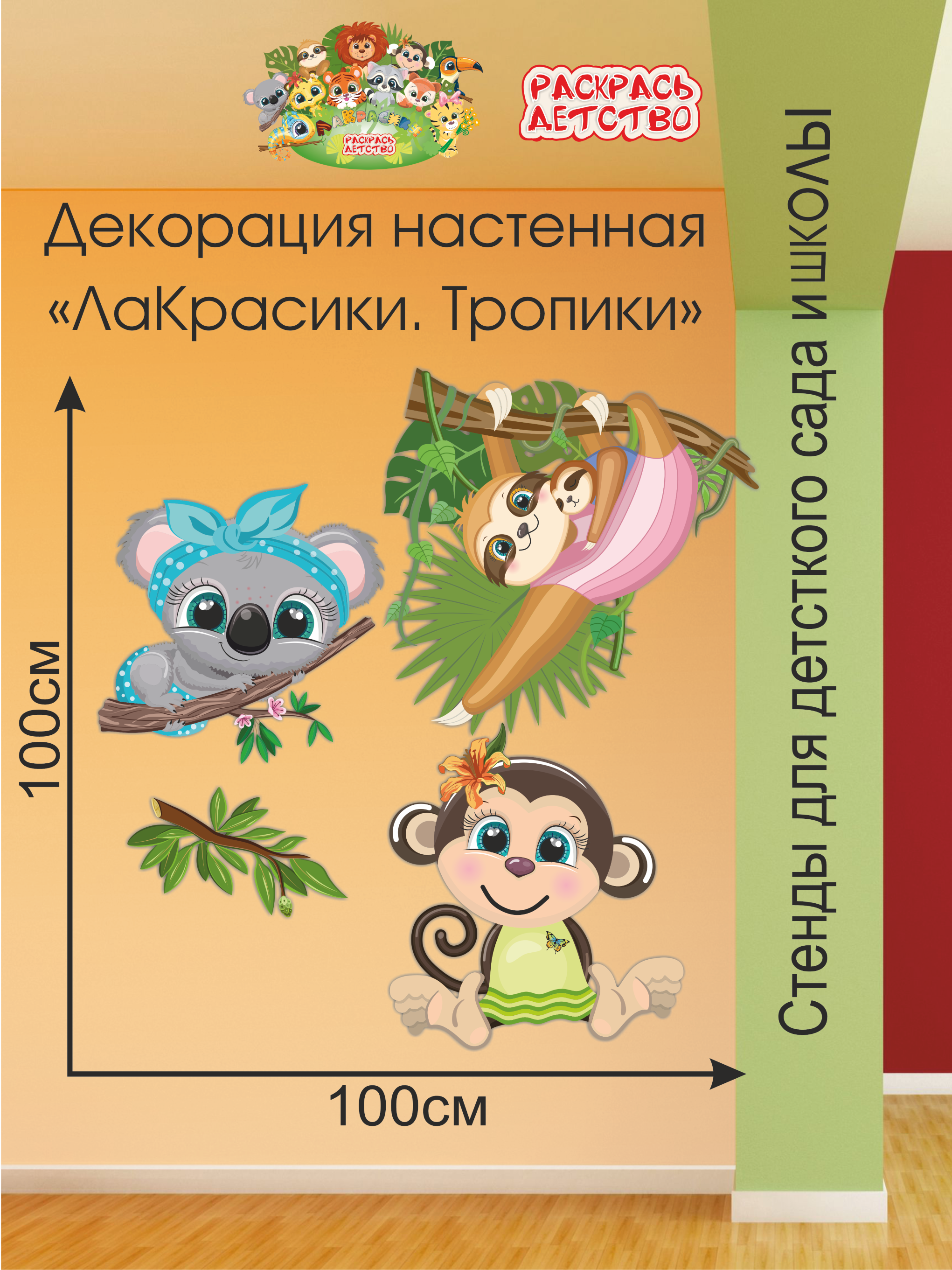 Декорация настенная Мультики "ЛаКрасики. Коала Сплюша, Обезия, Лейла и её малыш Майли" из коллекции Мультики "ЛаКрасики".