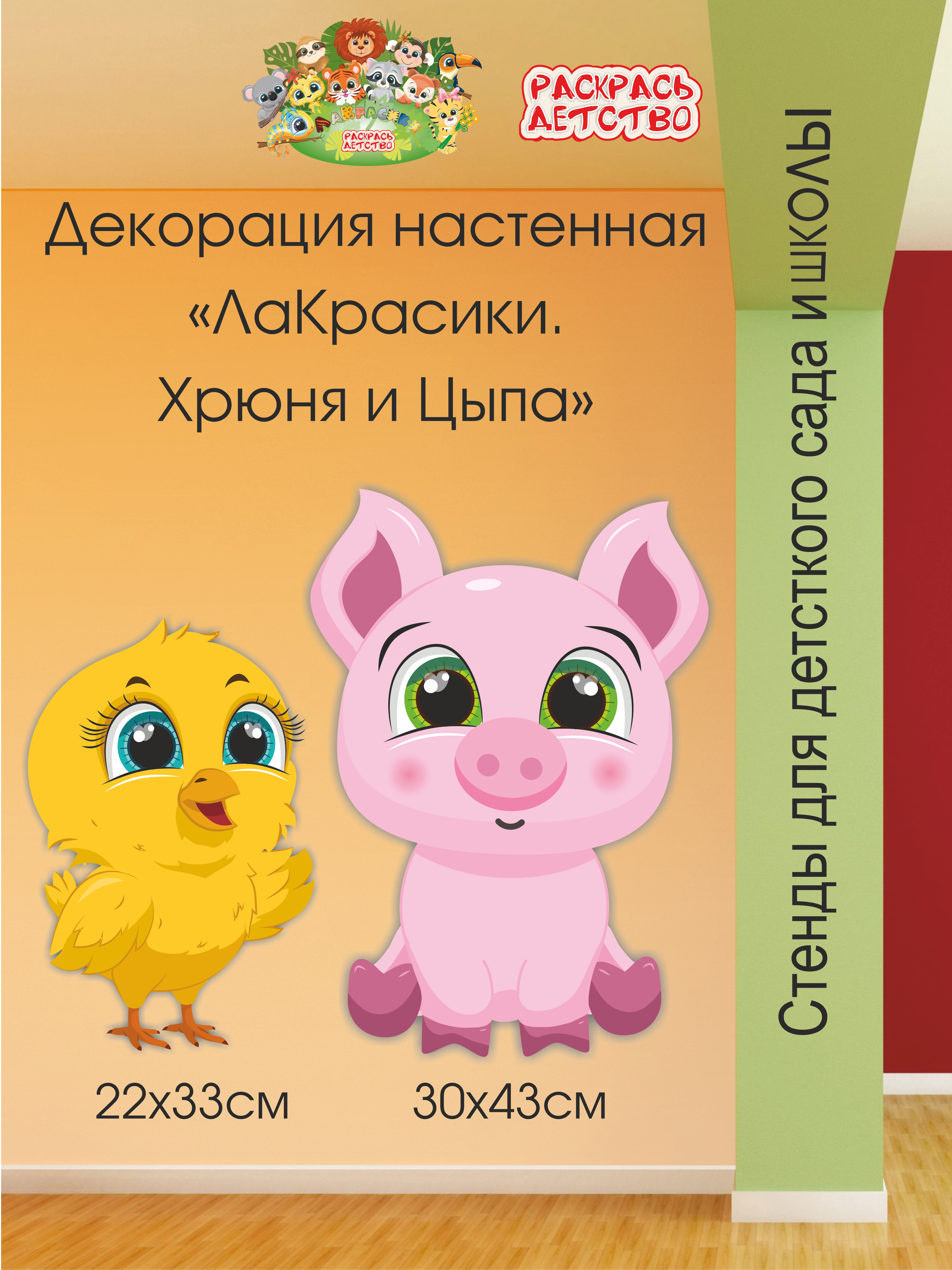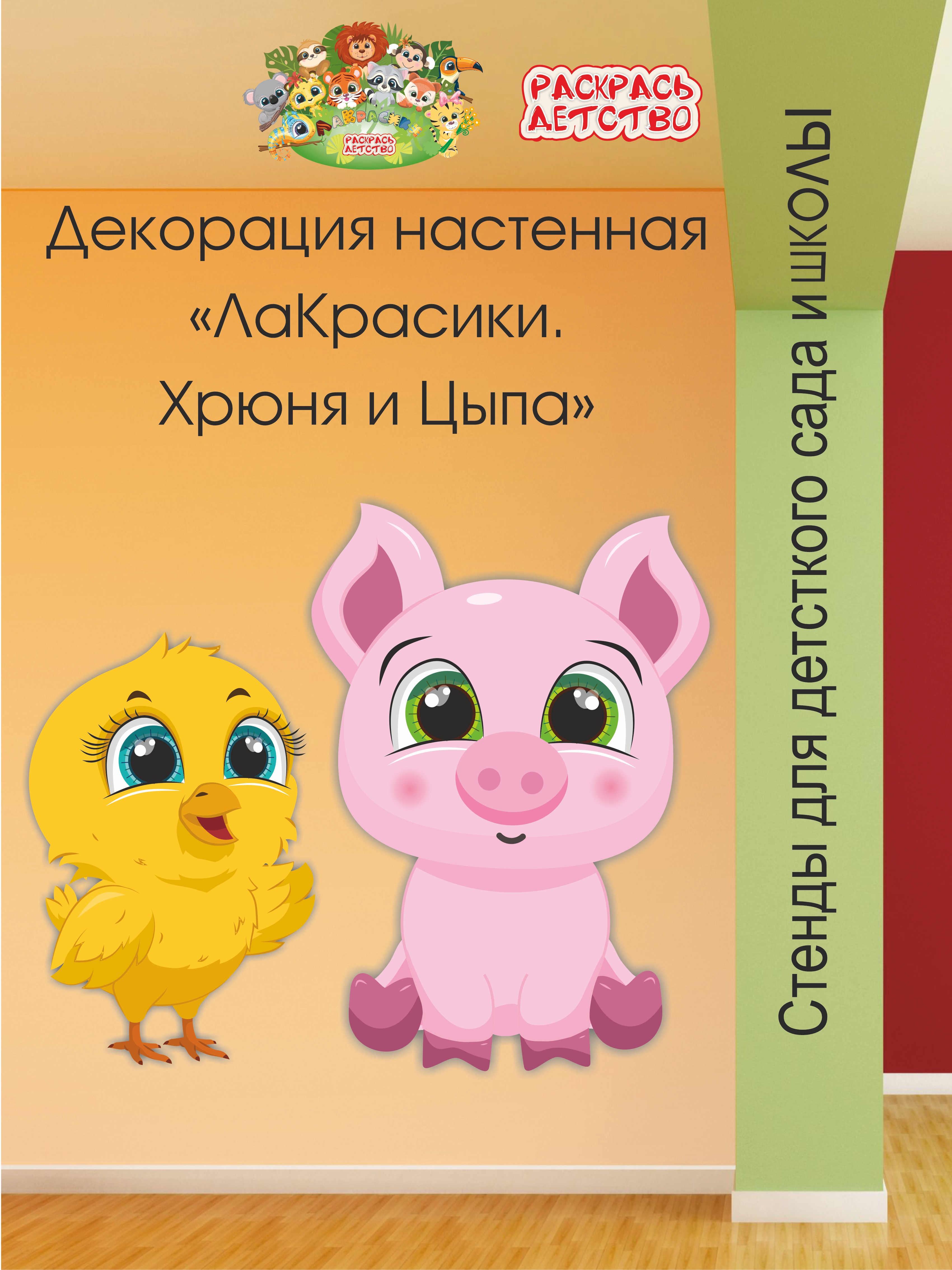 Декорация настенная Мультики "ЛаКрасики. Хрюня и Цыпа" - это отличное решение для оформления детского сада.