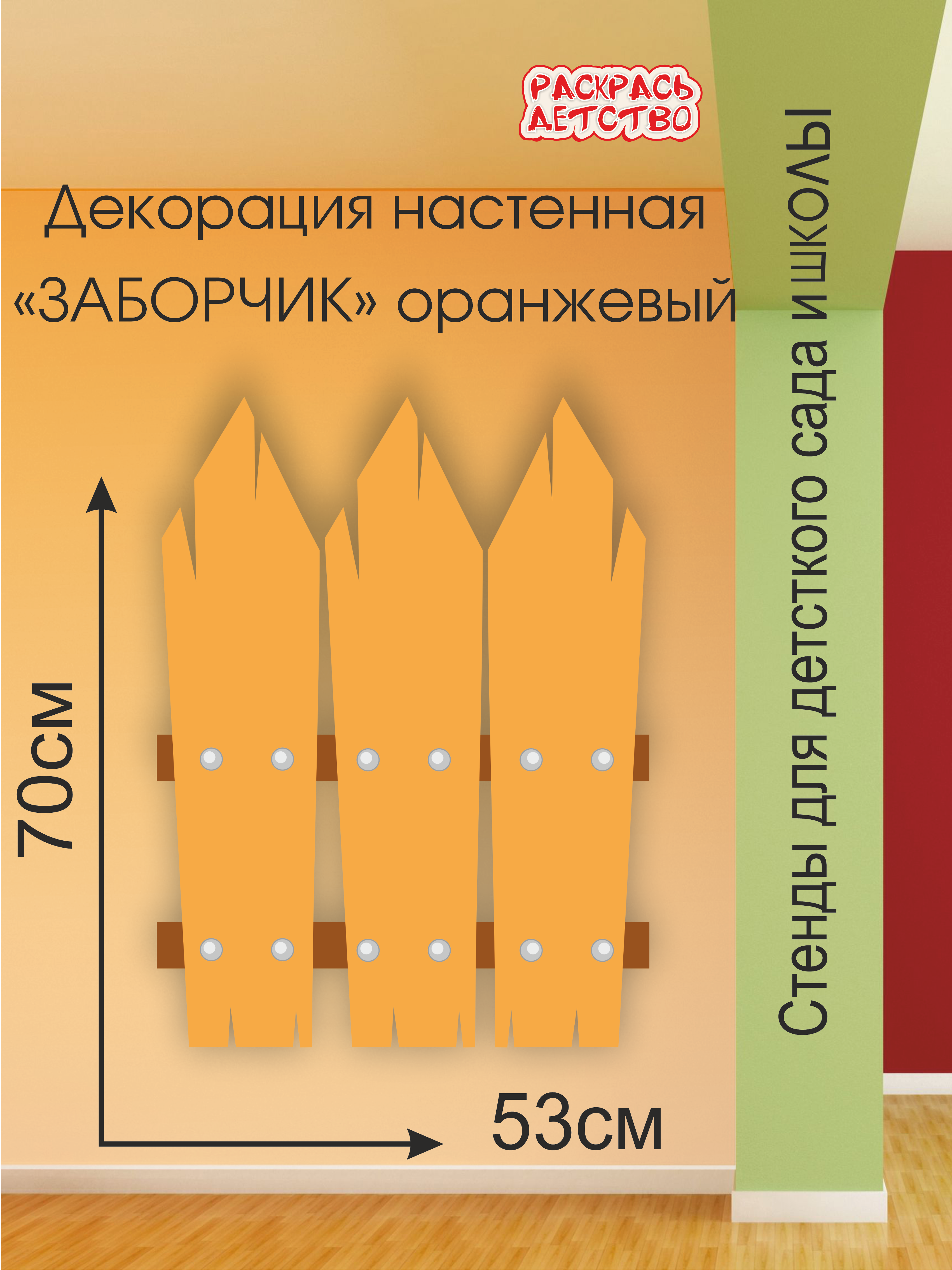 Изготовлен из прочного пластика толщиной 3 мм. Декорация обладает высокой прочностью и долговечностью, поэтому он станет отличным выбором для использования в учебных заведениях, офисах и других местах, где требуется наглядная информация. Высококачественная печать защищена ламинирующей пленкой, что позволяет проводить влажную уборку без потери внешних качеств изделия. Настенная декорация "Заборчик"отлично подойдет для защиты стенового покрытия от загрязнений в проходных местах. Яркий и красочный дизайн делает настенные декорации привлекательным и заметным. Они удобны в монтаже и долговечные.
