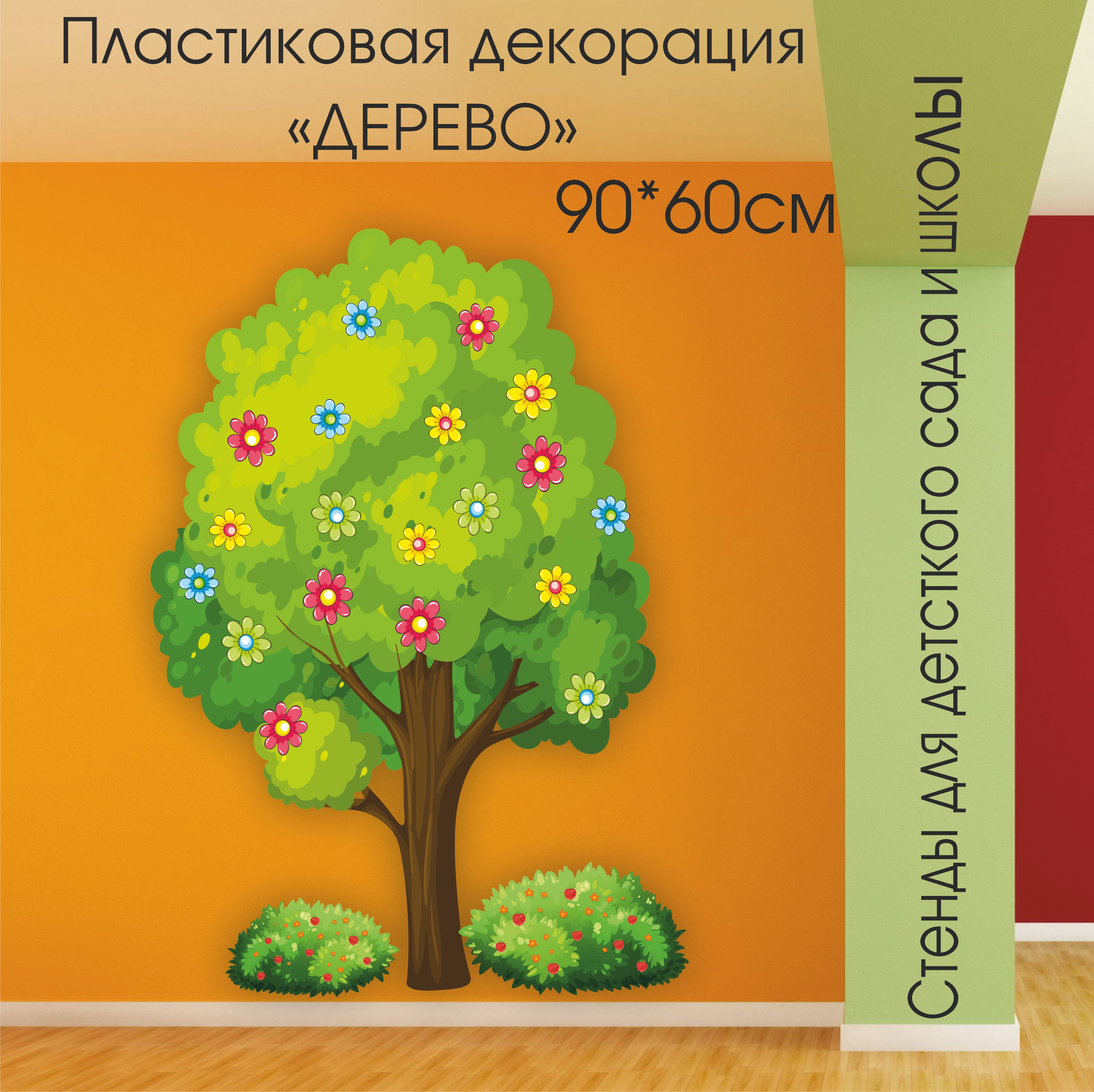 Настенная пластиковая декорация "Дерево" предназначена для оформления детского сада и детской комнаты изготовлены из прочного пластика.