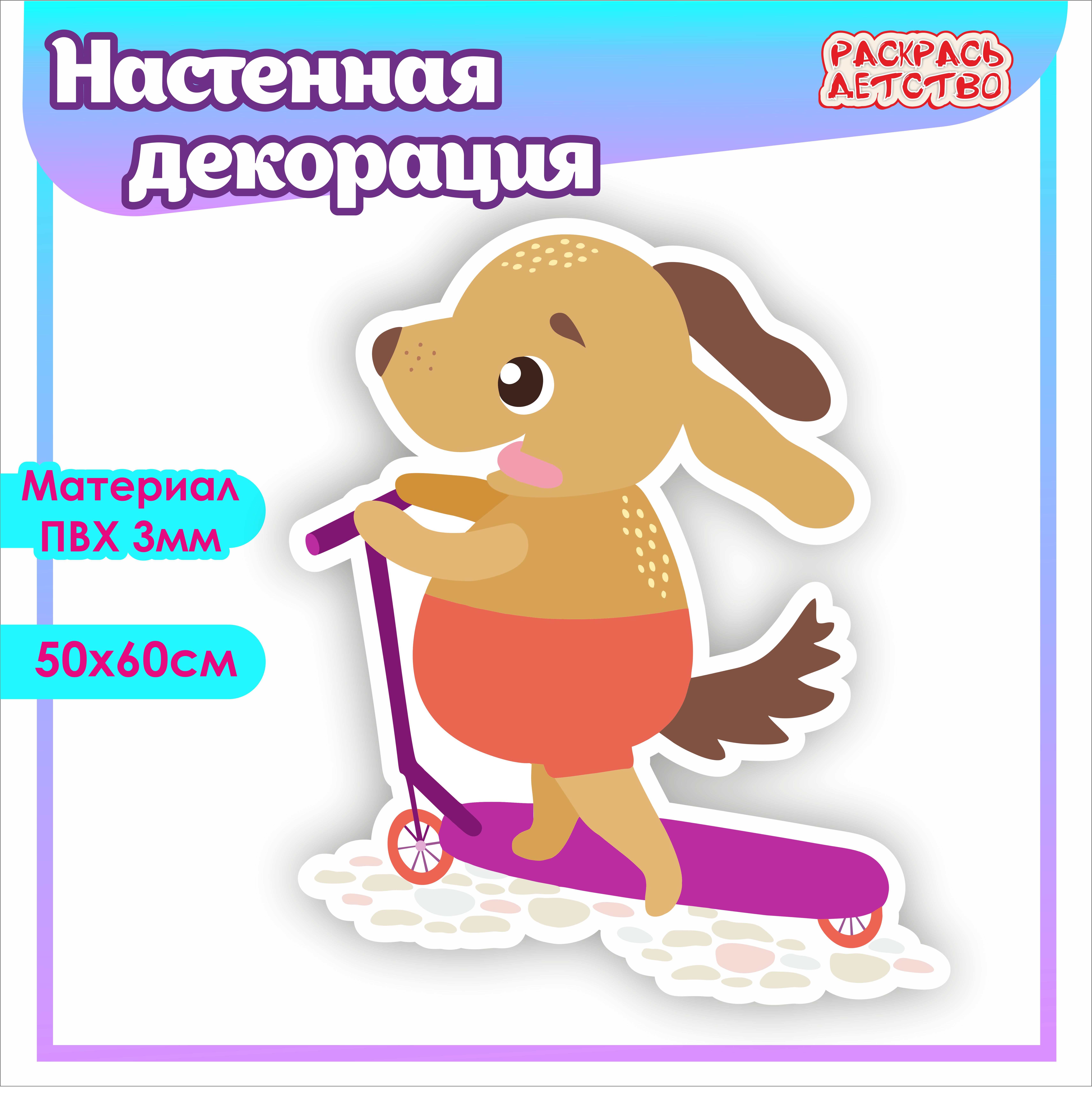 Настенная декорация "Собачка на самокате" для детского сада и школы.