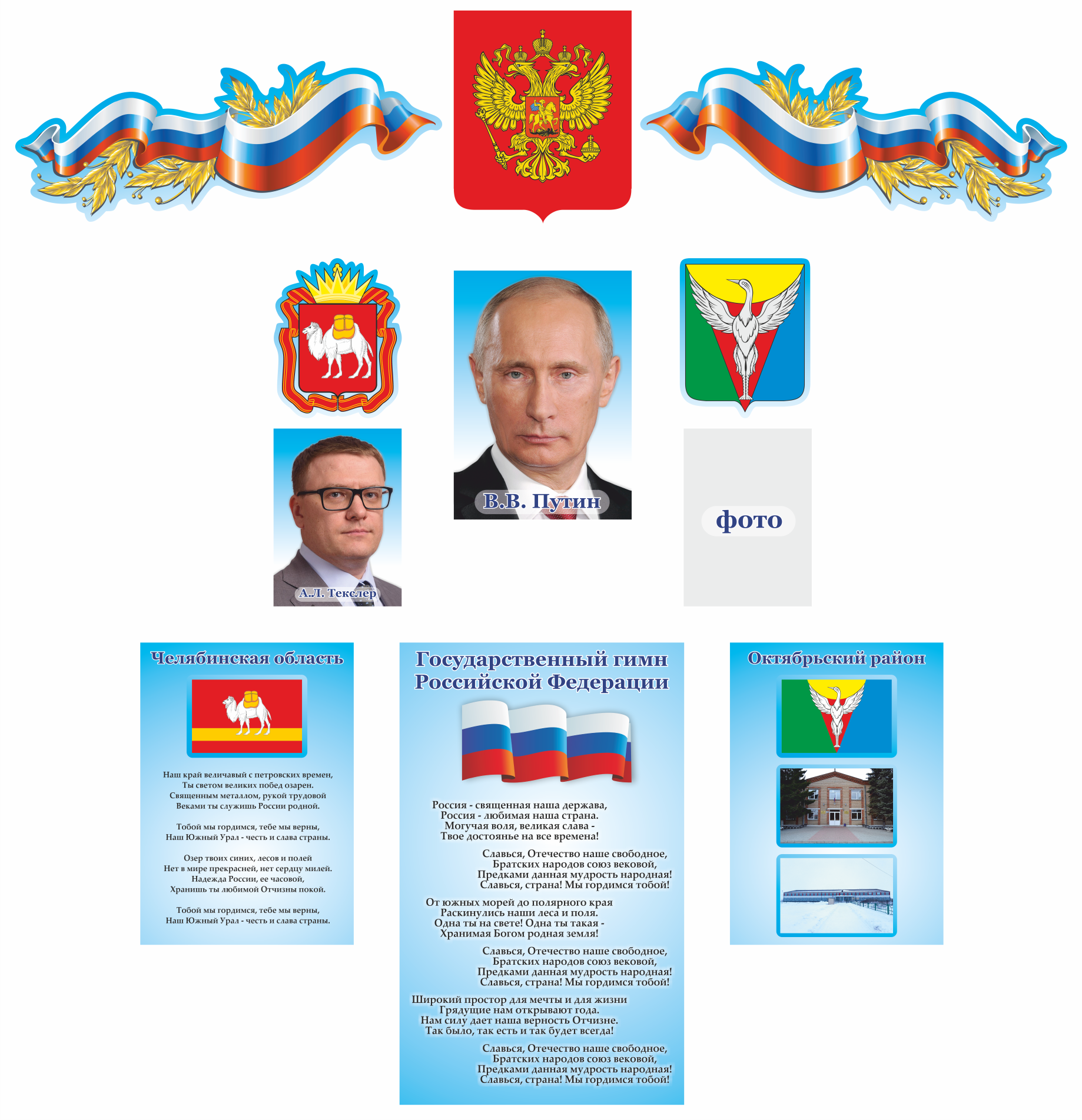 Портрет 0,36х0,5м 2 шт. Гос. гимн 0,8х1,3м;