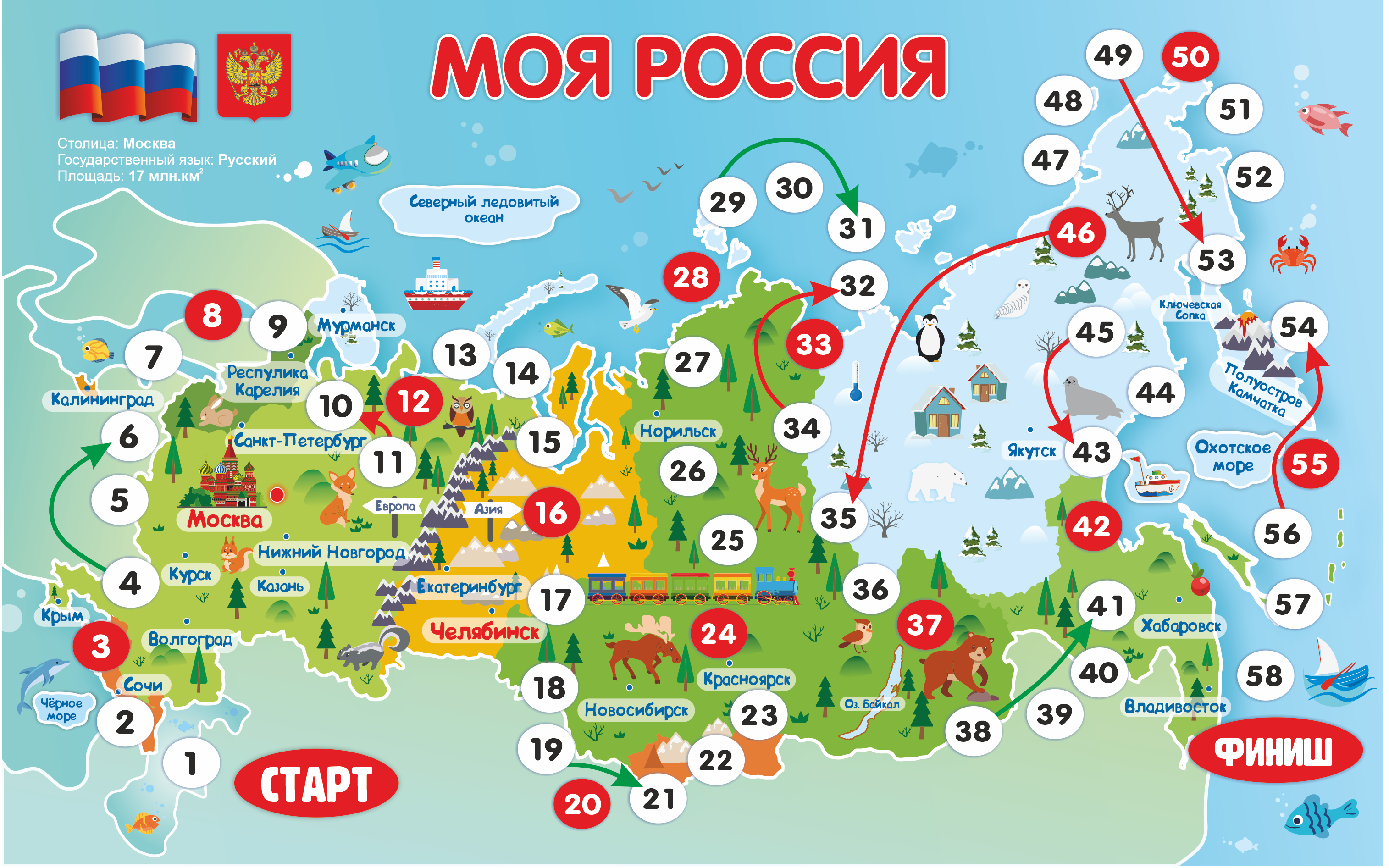 Изучаем карту России, регионы, реки и озера, климатические зоны и одновременно играем.