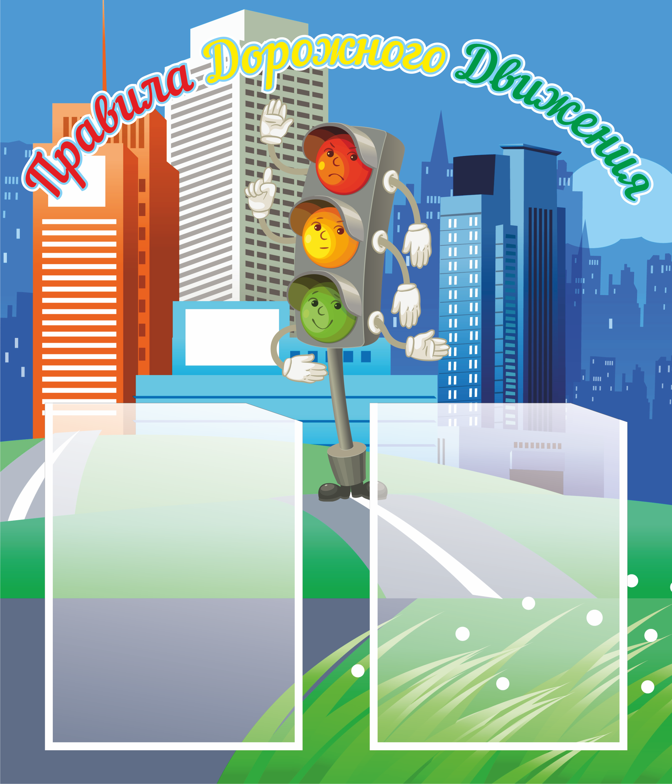Информационный стенд "Правила дорожного движения" с 2 карманами формата А4.