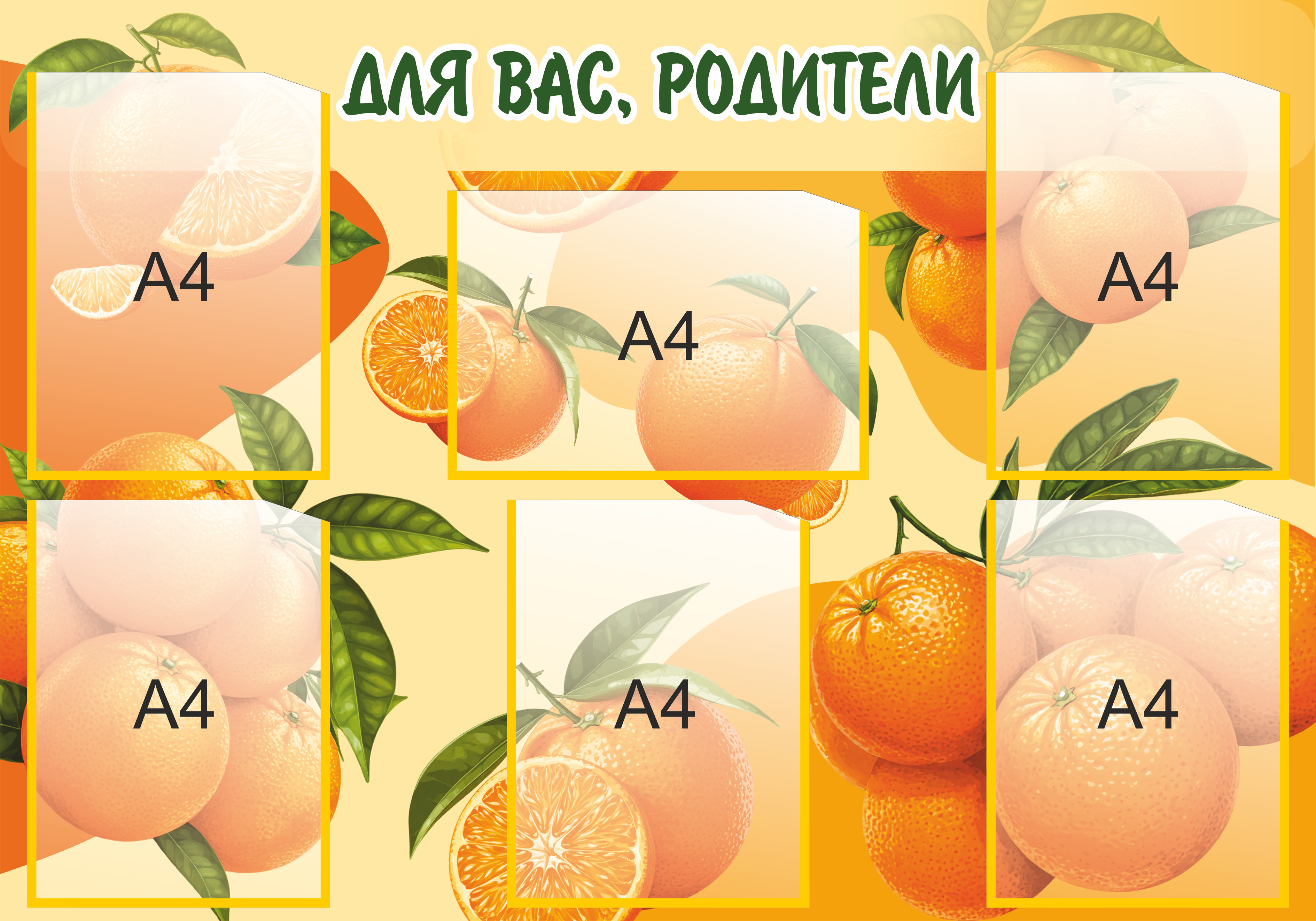 Стенд для детского сада Апельсинки, Для Вас Родители, 1м*0,7м, 6 карманов арт.3274