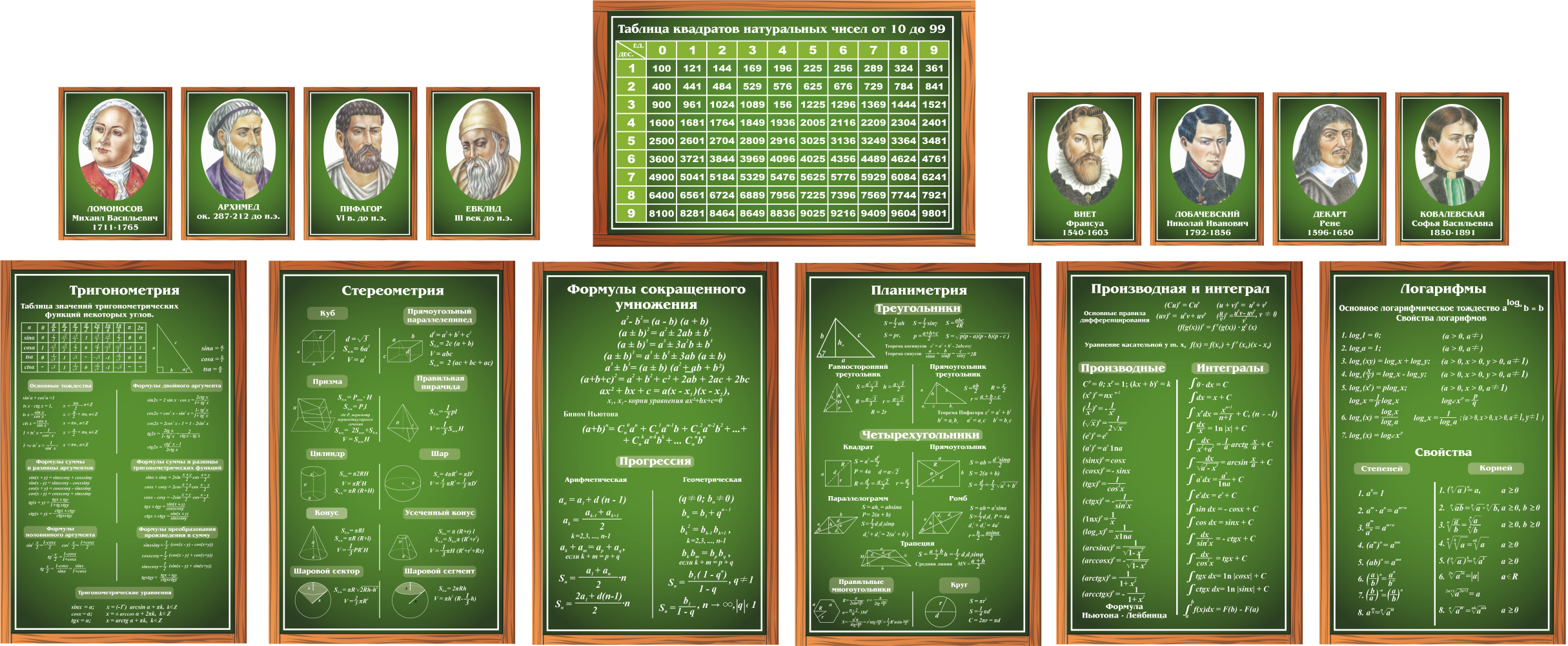 Комплект обучающих стендов в кабинет математики информационный зеленый.